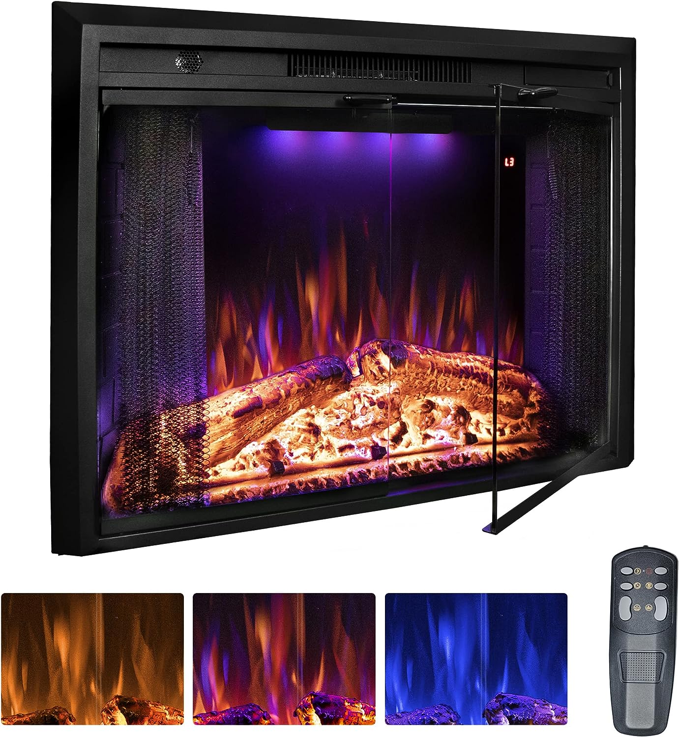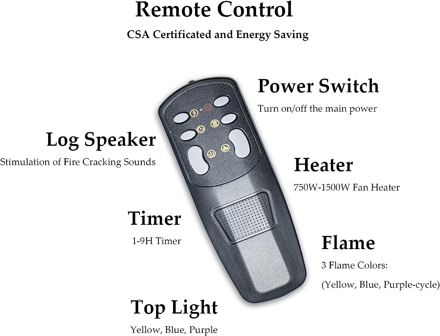 - Realistic Flames: Open the two-sided glass door and observe the lifelike flames without hindrance. Whole logs make the flame more atmospheric. And there are three colors of flame & top light: orange, blue, purple. Worth mentioning, the fireplace has a log speaker that simulates the sounds of fire burning.